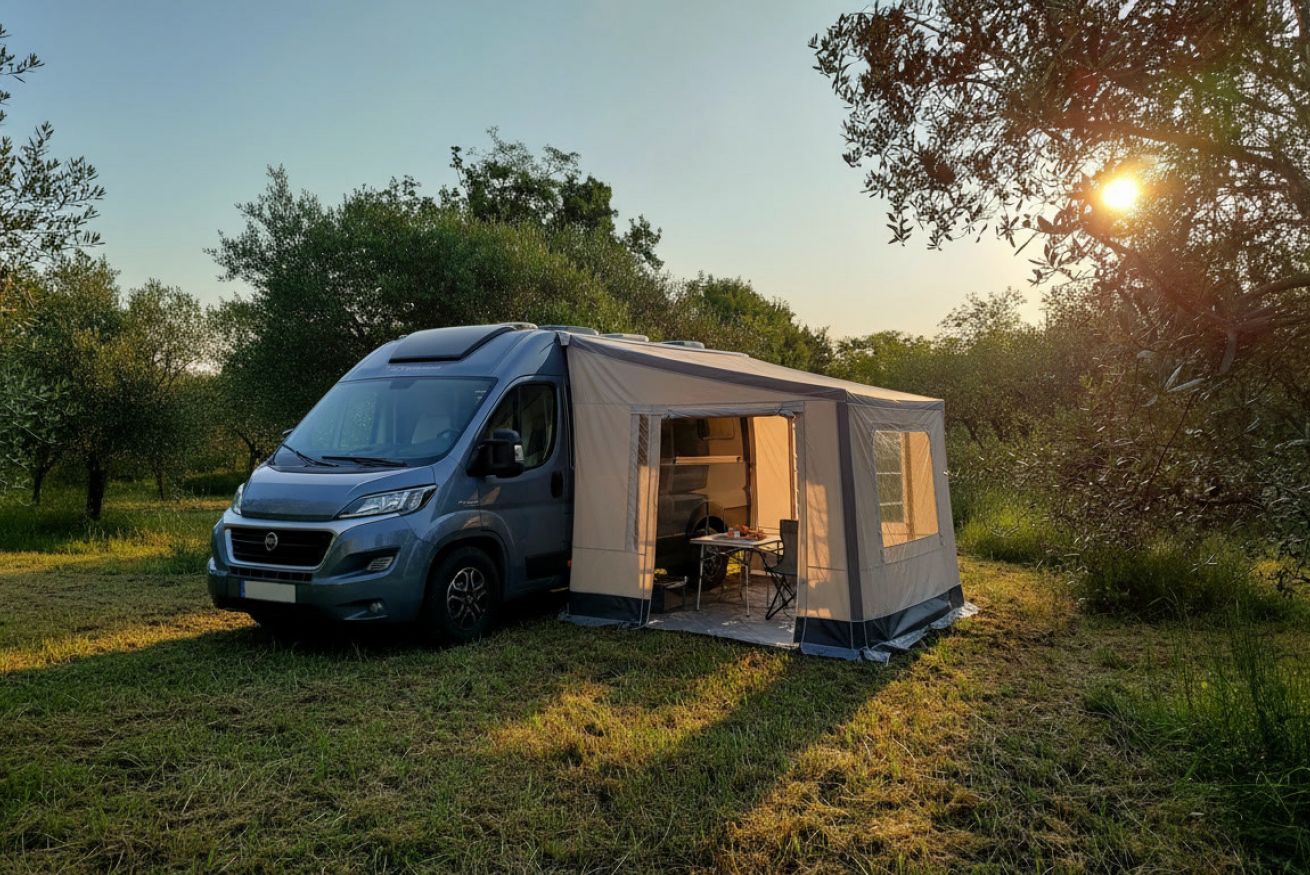 Piazzola di 65m². Per camper fino a 8,5 metri e 6 persone.